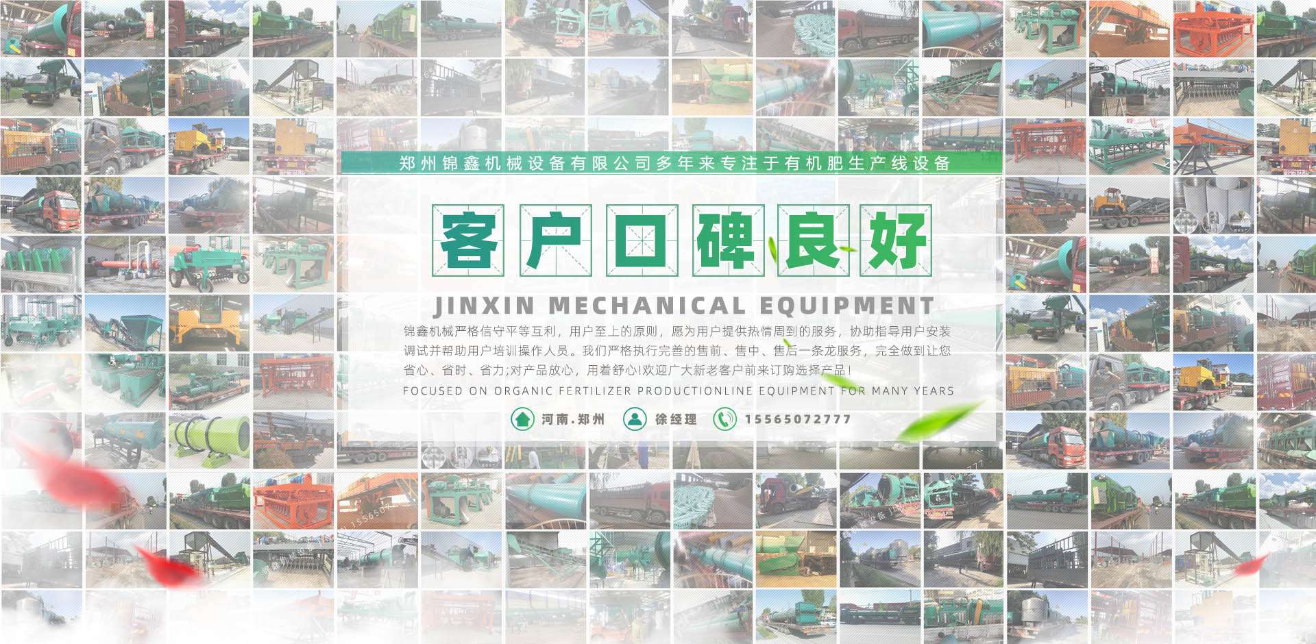 鄭州錦鑫機(jī)械設(shè)備有限公司,位于機(jī)械之鄉(xiāng)的河南省滎陽(yáng)市,它交通便利,連霍高速公路、鄭州西南繞城高速、隴海鐵路、鄭西客運(yùn)專(zhuān)線(xiàn)貫穿全境,南水北調(diào)、西氣東輸在這里交匯。   公司有技術(shù)團(tuán)隊(duì)為企業(yè)生產(chǎn)肥料加工設(shè)備,有的合作伙伴,科學(xué)、規(guī)范的客戶(hù)培訓(xùn)體系;還有積極健康的企業(yè)文化,不斷創(chuàng)新的管理體制和經(jīng)營(yíng)模式和日益完備的經(jīng)銷(xiāo)網(wǎng)絡(luò)。它交通便利,310國(guó)道、連霍高速公路、鄭州西南繞城高速、隴海鐵路、鄭西客運(yùn)專(zhuān)線(xiàn)貫穿全境,南水北調(diào)、西氣東輸在這里交匯。   鄭州錦鑫機(jī)械設(shè)備有限公司是生產(chǎn)有機(jī)肥設(shè)備機(jī)械的企業(yè),產(chǎn)品:有機(jī)肥設(shè)備,有機(jī)肥造粒機(jī),復(fù)合肥設(shè)備,復(fù)合肥造粒機(jī),新型有機(jī)肥攪齒造粒機(jī),對(duì)輥擠壓造粒機(jī),有機(jī)肥生產(chǎn)線(xiàn),有機(jī)肥加工設(shè)備,復(fù)合肥生產(chǎn)設(shè)備,有機(jī)肥造粒設(shè)備,雞糞烘干機(jī),轉(zhuǎn)鼓造粒機(jī),bb肥設(shè)備等遠(yuǎn)銷(xiāo)各地,品質(zhì)深受肯定! ...