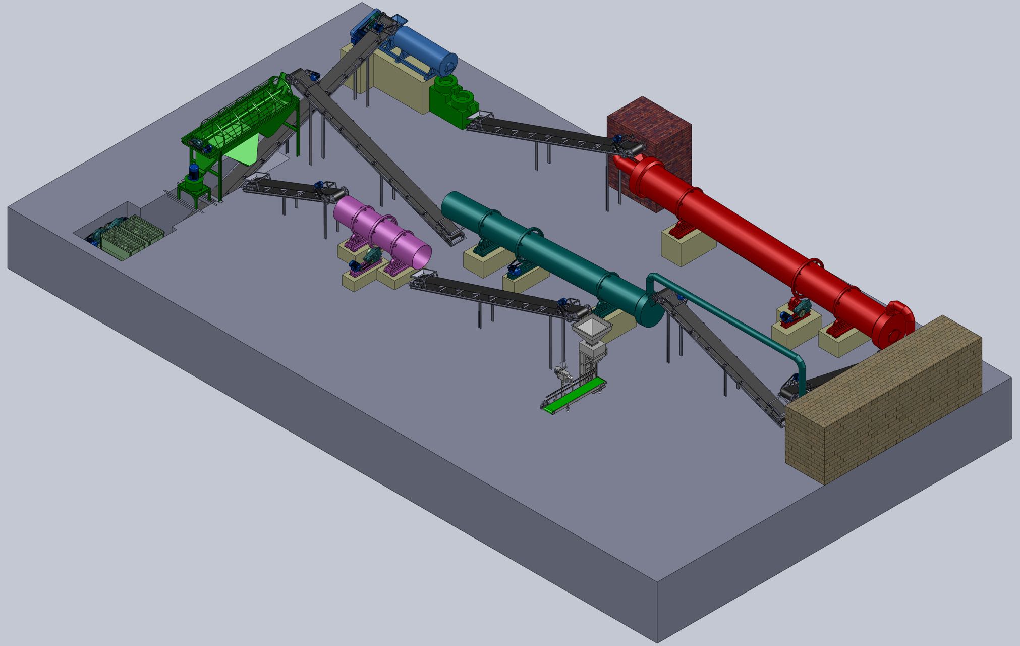 6、干后的顆粒再通過輸送帶到達(dá)冷卻筒進(jìn)行冷卻。